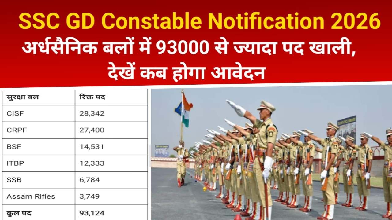 SSC GD Constable Notification 2026: अर्धसैनिक बलों में 93000 से ज्यादा पद खाली, जल्द आ सकती है बड़ी भर्ती